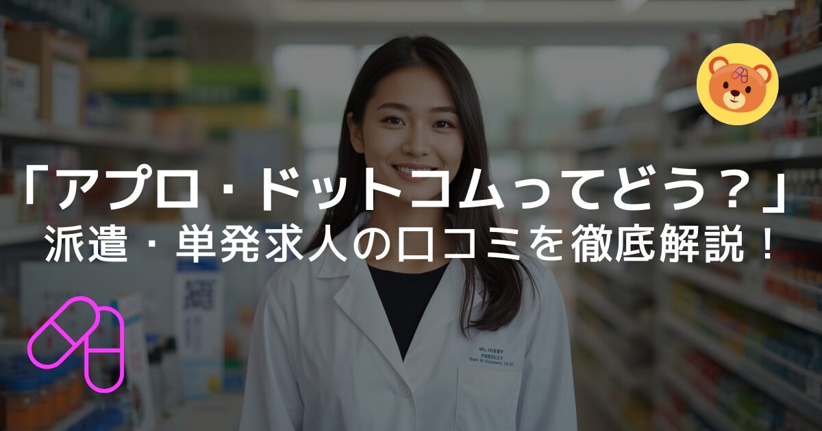 この記事では、派遣薬剤師として働きたい人向けにアプロ・ドットコムについての評判・口コミをまとめ、どういう人が使うべきなのかを分かりやすく解説しています。
