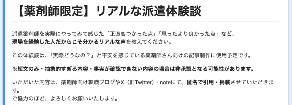 この記事では、実際に派遣で働いている30代女性薬剤師にインタビューを行い、