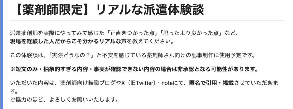 - 派遣先によっては投薬特化 or 幅広い業務など働き方に差が大きい