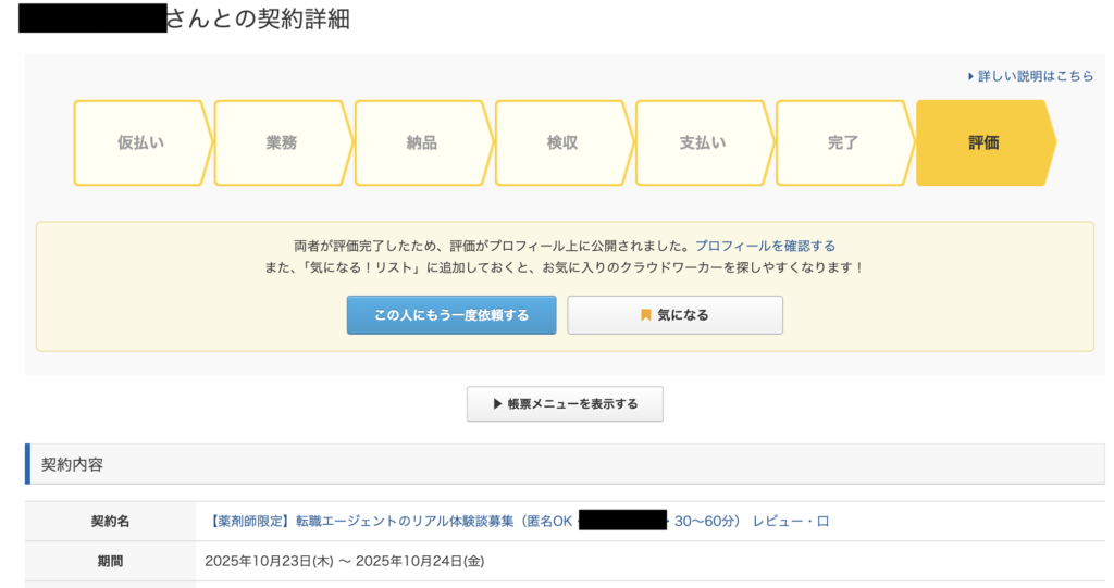 ※本記事の体験談は、クラウドワークス上で実際に薬剤師さんへ依頼・収集した内容をもとに構成しています。下記は実際の募集・契約時のスクリーンショットです(個人情報は伏せています)。