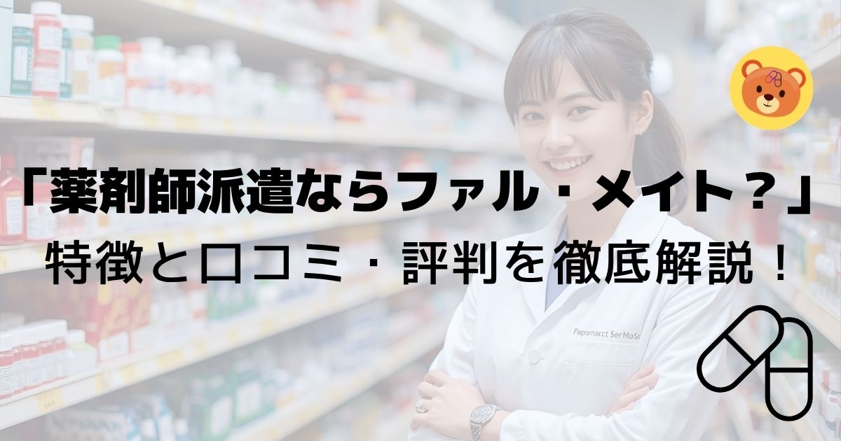 この記事では、派遣薬剤師として働きたい人向けにファル・メイトについての評判・口コミをまとめ、どういう人が使うべきなのかを分かりやすく解説しています。