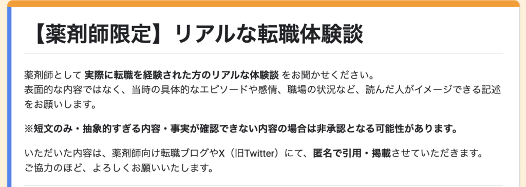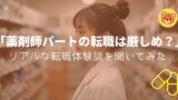 あくまで個人の意見ですが、転職を検討している薬剤師にとって非常に参考になる内容です。